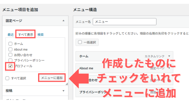 3. プロフィールを公開する固定ページ・メニュー設定のヒント